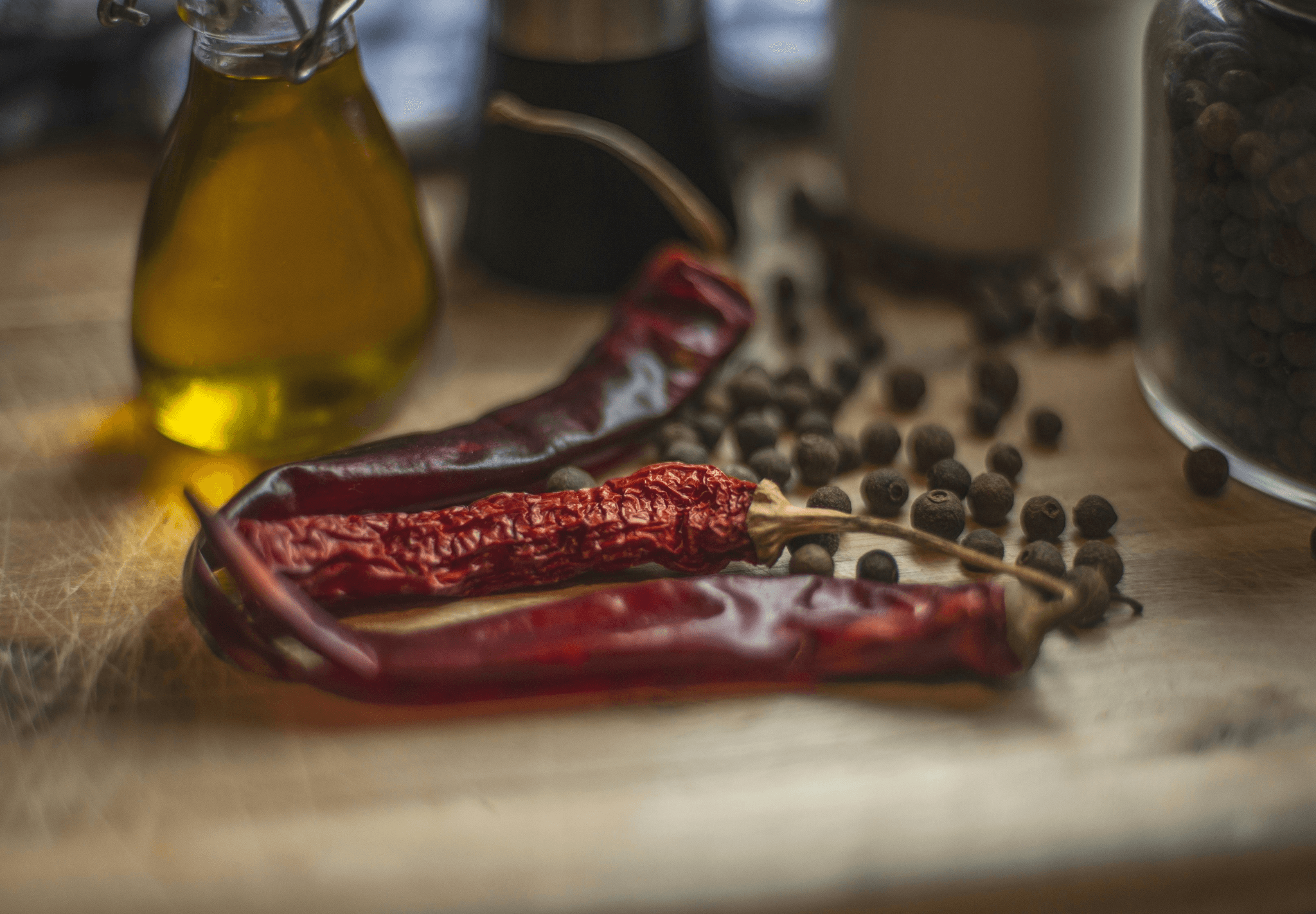 bell peppers, chili peppers, black peppercorns